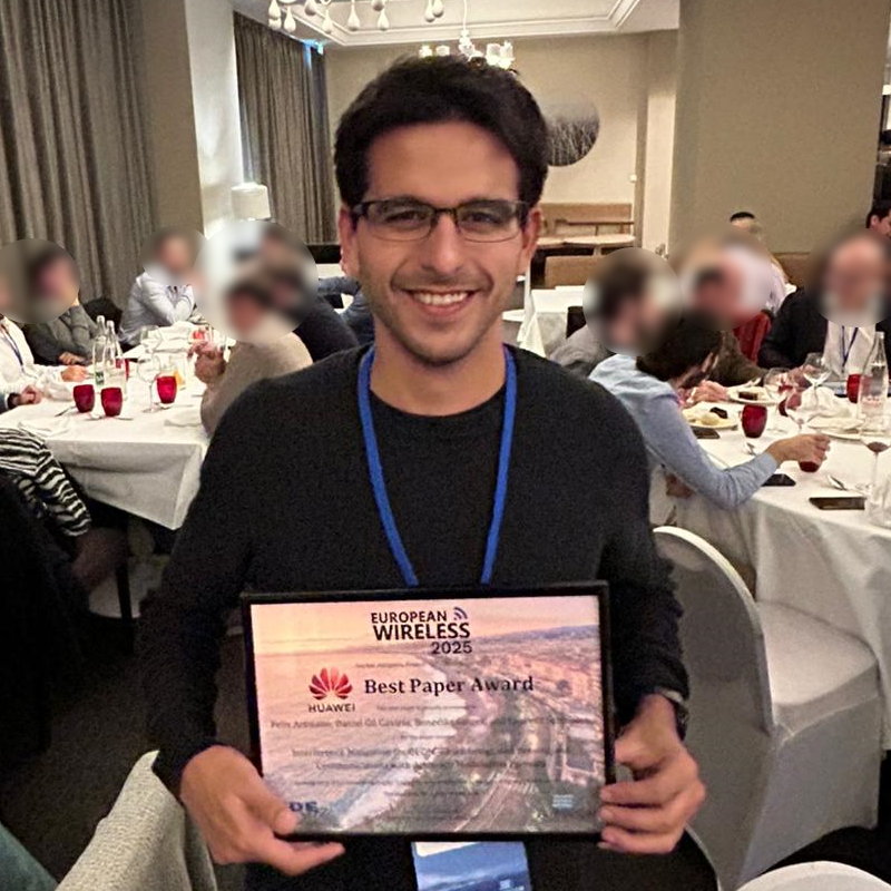 Wir freuen uns, bekannt geben zu dürfen, dass Daniel Gil Gaviria auf der European Wireless 2025 in Sophia-Antipolis, Frankreich, mit dem Best Paper Award ausgezeichnet wurde. Die prämierte Arbeit mit dem Titel „Interference Mitigation for OFDM-Based Integrated Sensing and Communications with Arbitrary Modulation Formats“ entstand in Zusammenarbeit mit Benedikt Geiger, Felix Artmann und Laurent Schmalen. In dieser Arbeit werden fortschrittliche Verfahren zur Interferenzminderung für integrierte Sensing- und Kommunikationssysteme in zukünftigen drahtlosen Netzen vorgestellt. Wir gratulieren Daniel und seinen Mitautoren herzlich zu dieser hervorragenden Leistung!